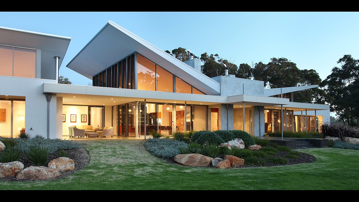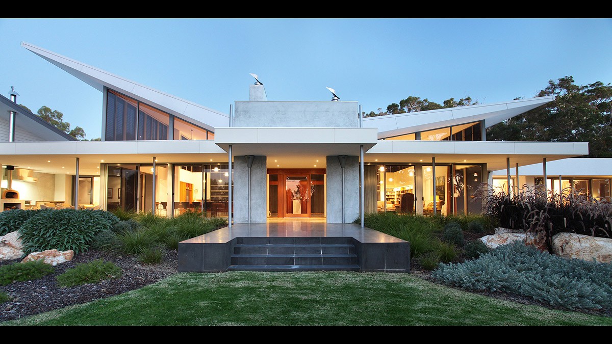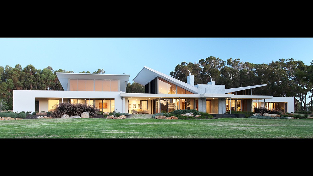 A sleek and modern abode in a rural landscape, with high raked ceilings, wide expansive living areas, sweeping verandas this home is impressive from the time you walk through the entry foyer. The finishes include imported stone tiles and bench tops, recycled wandoo flooring, extensive use of glass and an aesthetically arresting facade with 2 imposing “wings” that dominate the surrounding landscape.