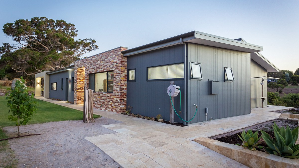 The external walls were clad with a combination of James Hardie Scyon Axon, recycled brick and render. The recycled brickwork was left exposed on the internal walls of the scullery and kitchen resulting in a industrial style look, which the clients were aiming for. The marri benchtops add an element of warmth and created a nice contrast against the polished concrete floors and brickwork.